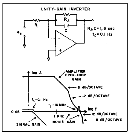 需要注意的是,对于无源反馈元件,1/β不会小于单位增益值,而且对于任意输入信号,该值也大于闭环增益。因此,即使信号增益小于单位增益,或者信号带宽较窄,但en的总频谱将出现在输出端,其值至少等于单位增益。