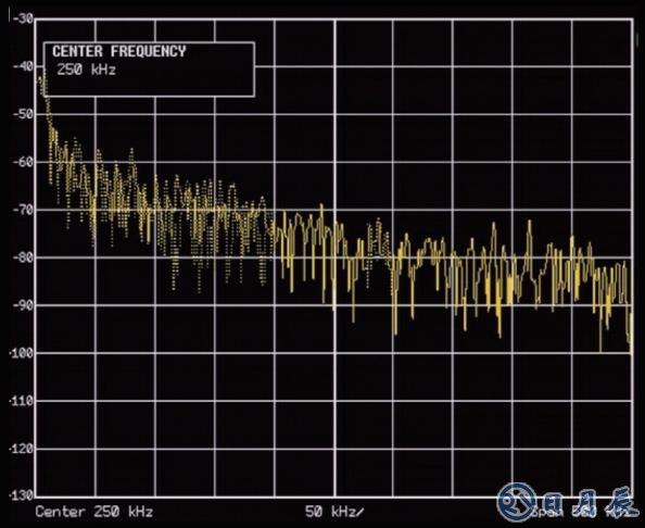 对电弧频谱进行分析也是有意义的。图11显示了系统中存在电弧时的频谱。它在系统的基本电平以上是可见的。频率较低时,电平较高,更易于检测,但在这种较低电平时,存在系统开关元件,需要予以滤除以便检测电弧特征。在频率范围的较低区域可能需要使用较高分辨率的ADC。