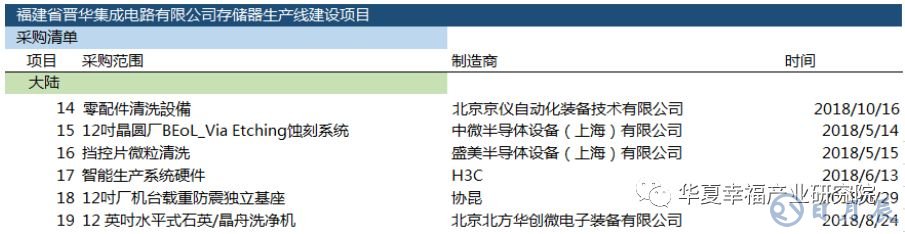 图7 晋华部分装备采购清单