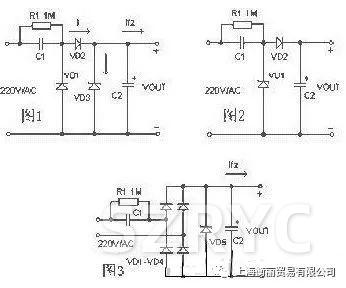 如图-1,C1为降压电容器,D2为半波整流二极管,D1在市电的负半周时给C1提供放电