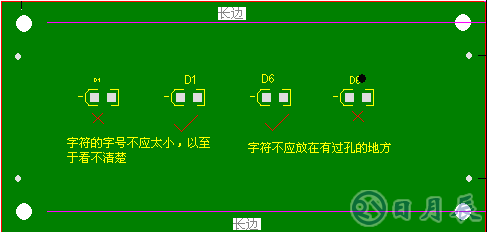 丝印字符的字号不应太小,以至于看不清。字符放置位置应错开过孔,以免误读。