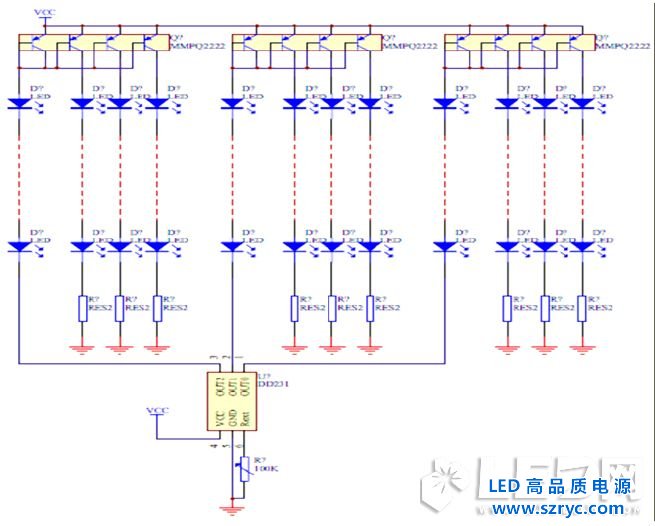 LED因其VF值特性原因做不到相同,随着温度及电流大小也有些VF值也会发生变化,一般不适合并联设计。但是有些情况又不得不并联解决多颗LED驱动成本问题,这些设计可以为大家做些参考。