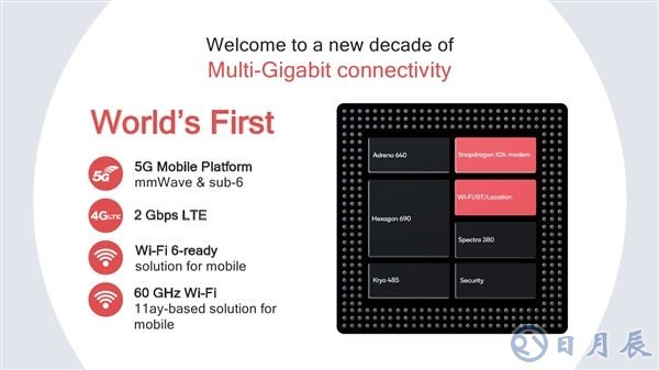 同时,骁龙855是全球首款支持802.11ay 60GHz Wi-Fi的移动方案,最高速度可达10Gbps,并支持媲美有线网络的低时延。
