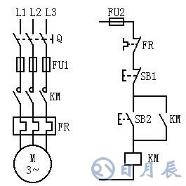 为了更好的理解这种等效关系,下面通过一个例子来说明。如图1所示为三相异步电动机单向起动运行的电器控制系统。其中,由输入设备SB1、SB2、FR的触点构成系统的输入部分,由输出设备KM构成系统的输出部分。