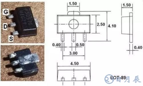 主板上常用四端引脚的SOT-89 MOSFET。其规格尺寸如下: