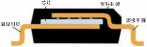 与PGA封装方式一样,该封装方式将芯片包裹在塑封体内,无法将芯片工作时产生的热量及时导出,制约了MOSFET性能的提升;而且塑封本身增加了器件尺寸,不符合半导体向轻、薄、短、小方向发展的要求;另外,此类封装方式是基于单颗芯片进行,存在生产效率低、封装成本高的问题。
