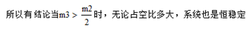 m2/m1>1时相当于 D/(1-D)>1,也就时相当于D>0.5时会不稳定。