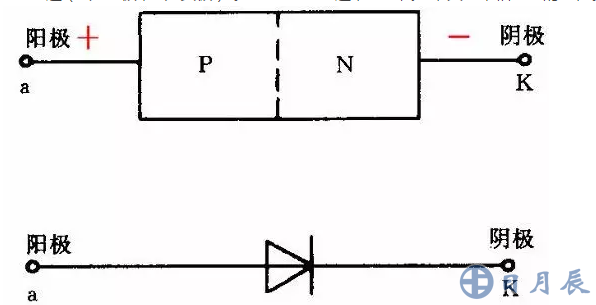 晶体二极管由一个PN结,两条电极引线和管壳构成。在PN结的两侧用导线引出加以封装,就是晶体二极管。晶体二极管的字母符号为V。PN结的导通方向是从P型半导体到N型半导体,即P到N导通(P为正极,N为负极) 。PN结正向导通,反向截至,具有单相导电的特性。