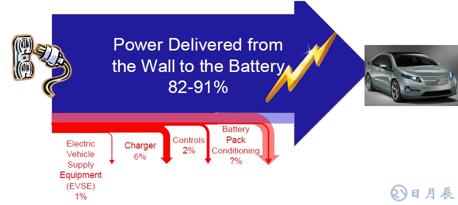 在从墙上的插座到给电池之中的时候,整个充电的效率是这样估计的: