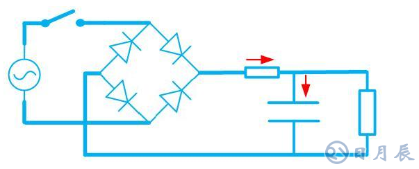 在起动的瞬间,交流输入电压通过整流器对电容器进行充电。