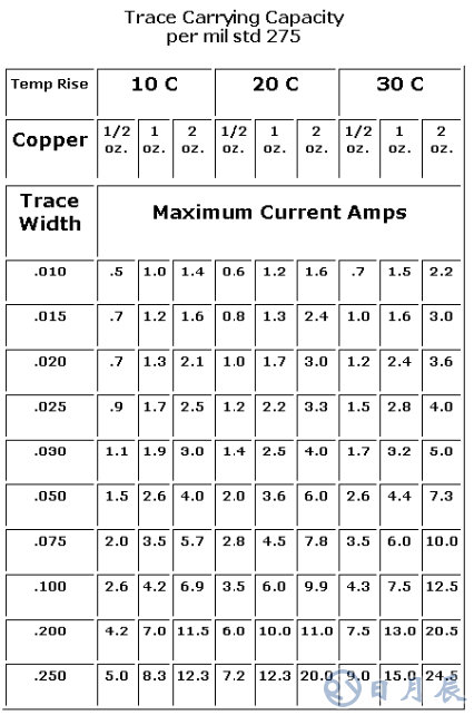 线宽的单位是:Inch 数据来源:MIL-STD-275 Printed Wiring for Electronic Equipment