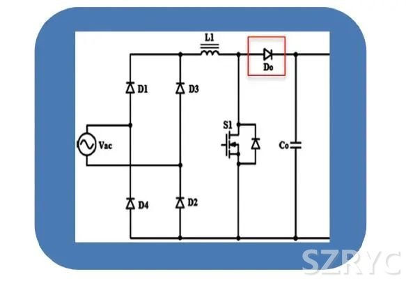 为了增加大功率电源产品的功率因数,减小谐波对电网的干扰和污染,3C认证(中国国家强制性产品认证)中要求,75W以上的快充电源需要配备主动式PFC电路。一个常用的主动式PFC电路如图1所示,其中功率器件选择SiC二极管搭配氮化镓开关管,可以将PFC级的工作频率从不足100KHz提升到300KHz,由此减小升压电感体积,实现高功率密度的设计,同时产品的效率也达到了大幅提升,成为大功率电源产品的核心竞争力。因此,碳化硅在快充应用领域的关注度越来越高。